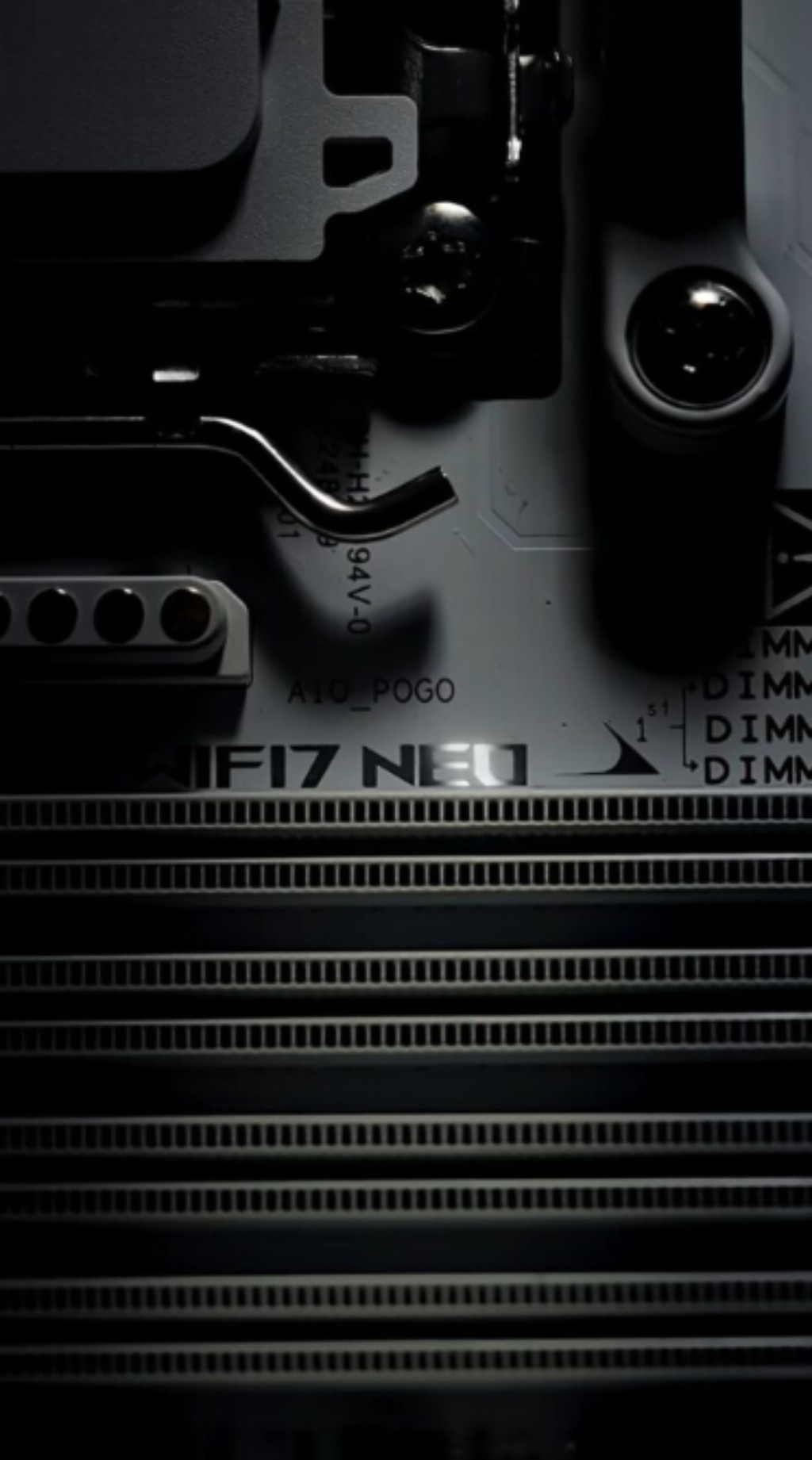 Um dos destaques mais comentados do teaser é a presença de um novo conector identificado como AIO_POGO, localizado próximo ao soquete AM5. Esse conector utiliza pinos pogo, que são contatos com mola capazes de transmitir energia e dados sem a necessidade de cabos tradicionais.