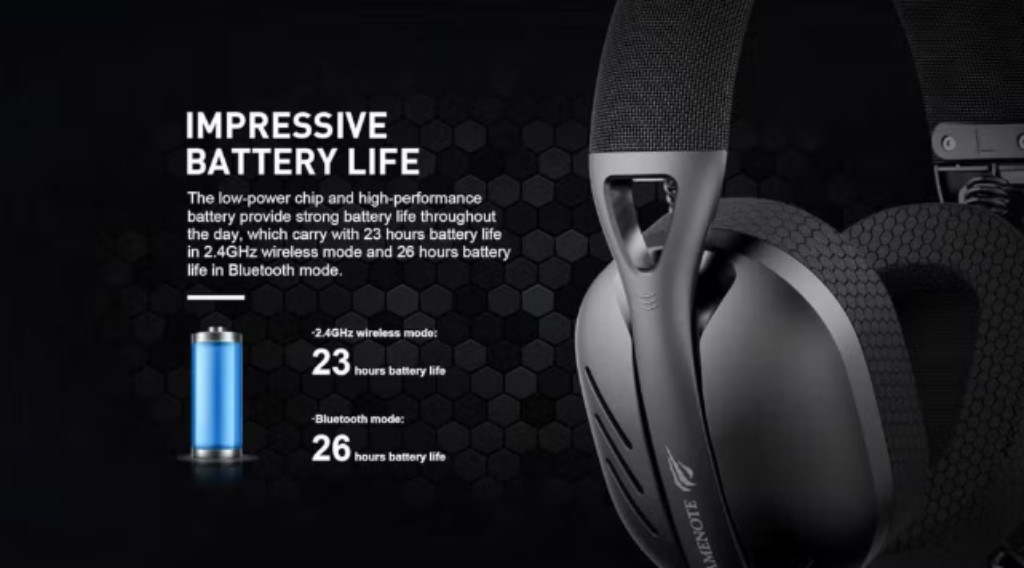 Com bateria de 600 mAh, o headset oferece até 23 horas de autonomia usando o receptor de 2.4 GHz, ou até 26 horas via Bluetooth, segundo a fabricante. A recarga é feita por cabo USB incluso na embalagem. Vale lembrar que a autonomia pode variar de acordo com o uso.