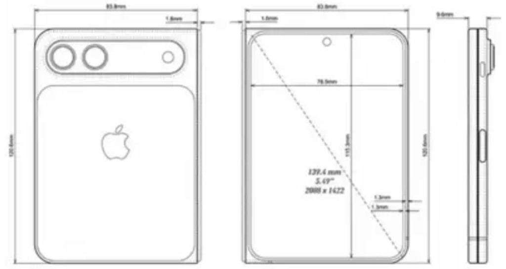 De acordo com os esboços vazados, o iPhone dobrável teria dimensões de 83,8 mm x 120,6 mm x 9,6 mm quando fechado. Ao ser totalmente aberto, o comprimento chegaria a 139,4 mm, colocando o dispositivo em uma categoria próxima a de um tablet compacto.