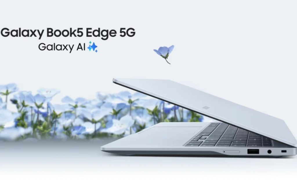 O Galaxy Book 5 Edge 5G inclui ainda webcam de 2 MP, teclado retroiluminado com leitor de digitais e teclado numérico. Ele vem com Windows 11 Home e recursos de IA da linha Copilot Plus PC.