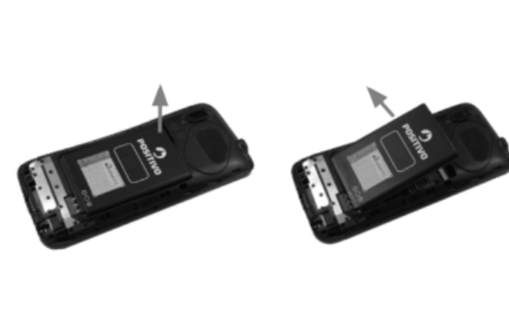 Através da saliência na parte superior da bateria, puxe-a com a ajuda do dedo até que a mesma se desencaixe do aparelho.
