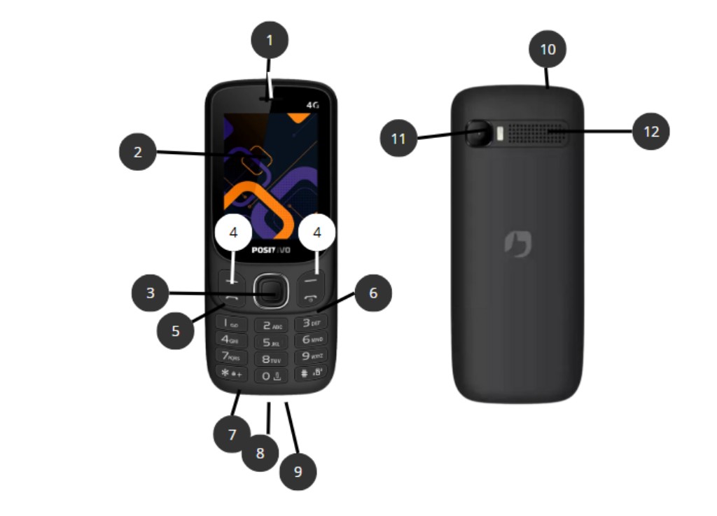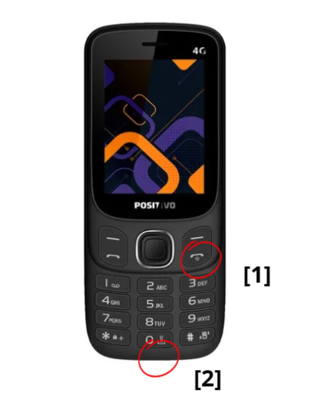 Após encaixar a bateria, segure a tecla Recusar/Desligar (1) por 2 segundos até que a tela acenda. Aguarde a animação de inicialização até que o aparelho possa ser utilizado. Caso o aparelho não ligue, pode ser que a bateria não esteja carregada. Neste caso, conecte o cabo Micro USB na entrada Micro USB na parte inferior do aparelho (2). Com a tela acesa, segure a tecla Recusar/Desligar por 2 segundos até a animação de inicialização seja exibida.