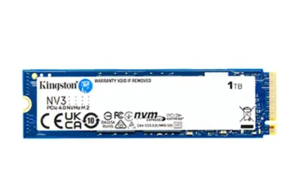 Com 512 GB e 1 TB como opções oficiais no Steam Machine, a configuração deste PC segue o caminho mais sensato: um SSD M.2 de 1 TB. O escolhido é o Kingston NV3, que equilibra desempenho, temperaturas baixas e excelente custo por gigabyte. Com os games cada vez mais pesados, iniciar já com 1 TB evita upgrades imediatos.