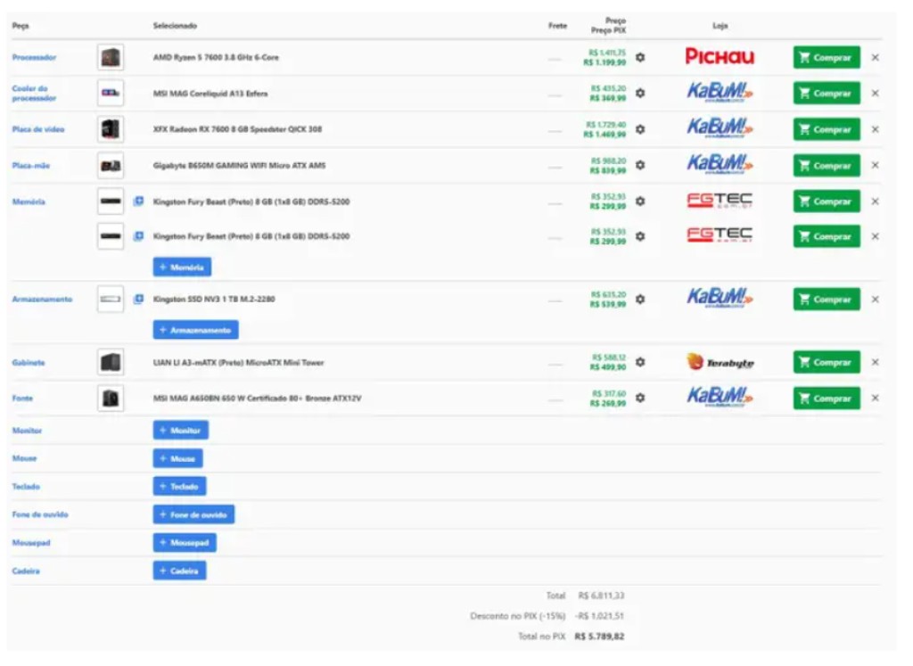 Para jogadores que desejam montar um setup personalizado, silencioso, compacto e ainda assim poderoso, esta configuração representa um excelente caminho — equilibrado, moderno e competitivo dentro da faixa de preço.