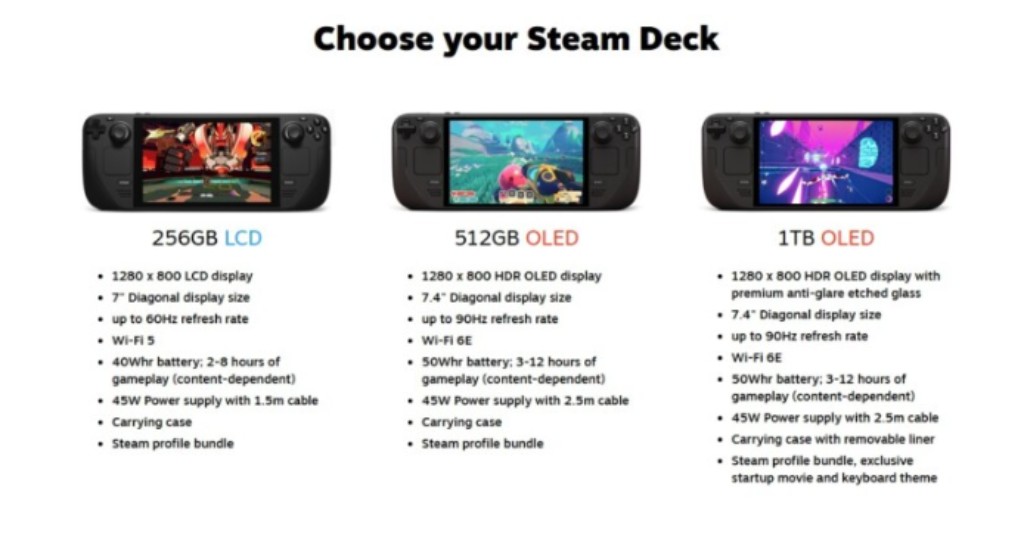 Com o fim do modelo LCD, o Steam Deck passa a ser vendido oficialmente em apenas duas versões, ambas com tela OLED.
