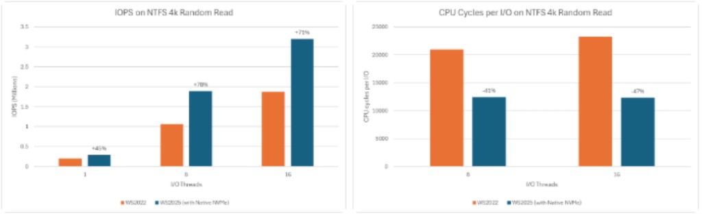 Ao manter a camada SCSI como intermediária, o Windows adicionava overhead desnecessário, aumentando latência e consumo de CPU. O suporte nativo ao NVMe no Windows Server 2025 elimina essa limitação estrutural.