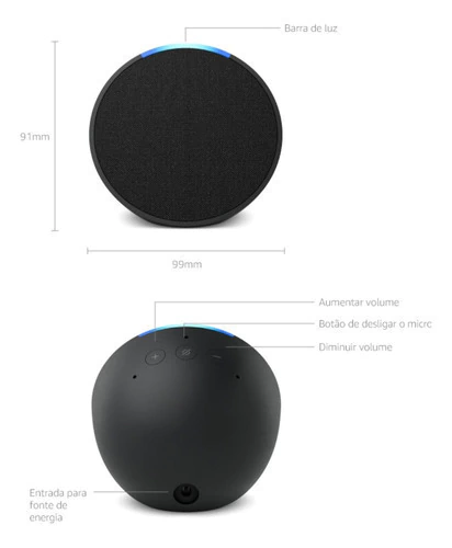 Precisa de bateria? Não. O Echo Pop é ligado diretamente na tomada.