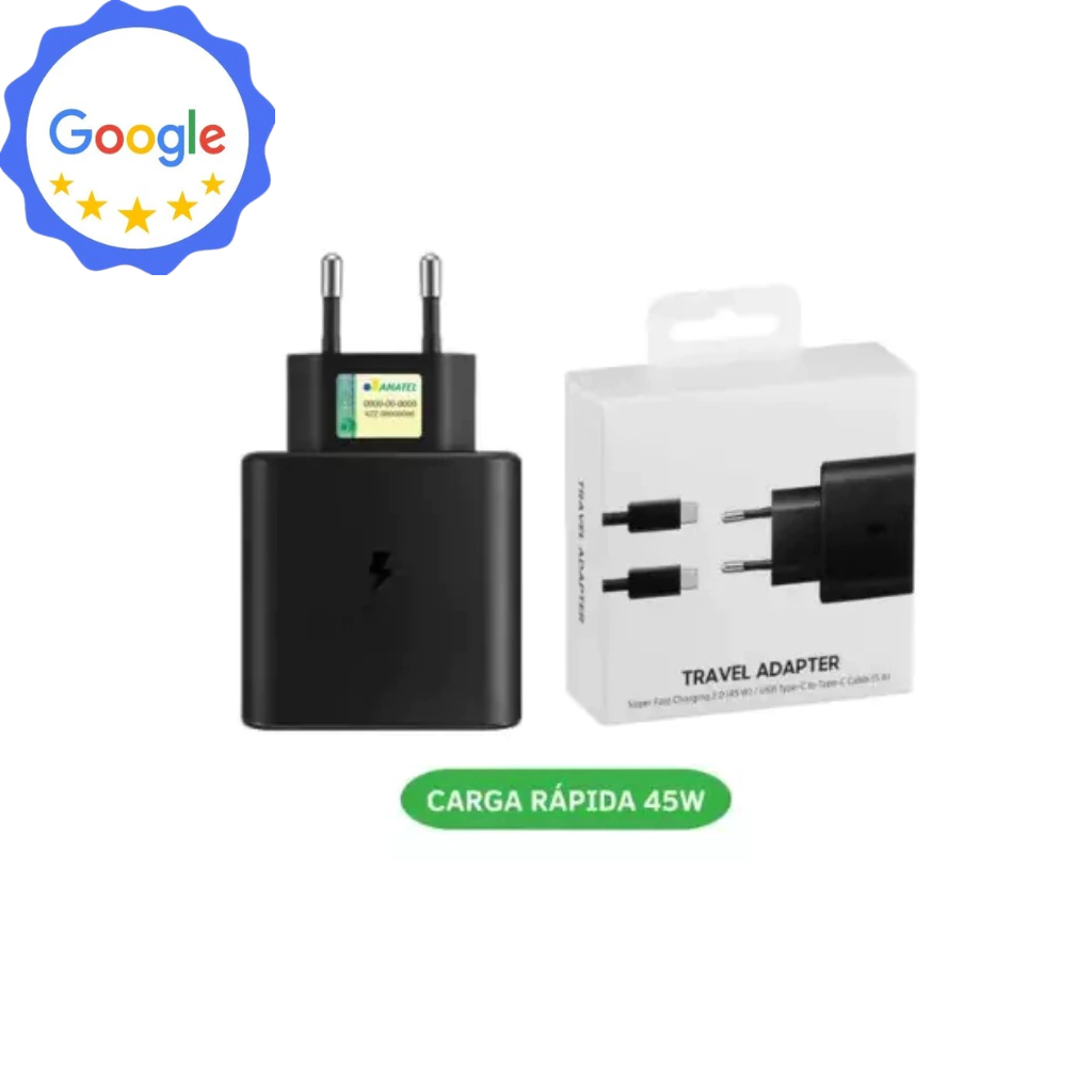 3 meses garantia-Suporte pós venda-envio no mesmo dia -teste antes do envio ITENS INCLUSOS:- 1(Um) Carregador Bivolt Turbo 45W Super Fast Charge - 1(Um) Cabo Tipo - CProduto 100% Original com garantia de 90 dias.Compatível com qualquer celular que possui entrada Tipo USB-CCor: PretoRecursos: 45W Super Fast ChargeInterface: USB-Type-CEspecificações Físicas:Extensão do cabo - 1 metroPeso: 50,25gDimensões (LxAxP): 41.4 x 78.1 x 26.2 mmAlimentação - Bivolt - Voltagem de entrada - 100~240 VVoltagem de saída (Máx. Carga normal) - 5 VVoltagem de saída (Máx. Carga rápida) - PDO: 9 V / PPS: 3,3-5,9 V ou 3,3-11,0 VCorrente de saída (Máx. Carga normal) - 3 ACorrente de saída (Máx. Carga rápida) - PDO: 2,77 A (9 V) / PPS: 3,0 A (3,3-5,9 V) ou 2,25 A (3,3-11,0 V)
