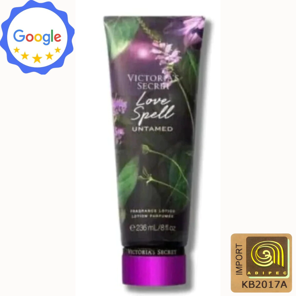Creme hidratante Victoria's Secret Love Spell Untamed 236ml com fragrância frutal e floral envolvente. Hidratação prolongada para pele macia e perfumada.